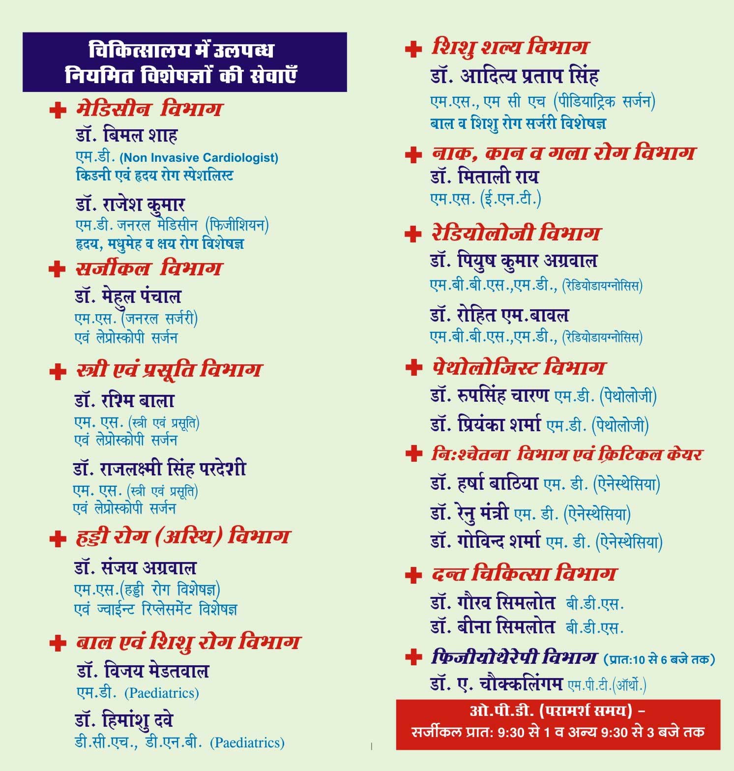 | 21 | Diagnostics - Pathology | Dr. Roop Singh Charan | M.D. Pathologist |